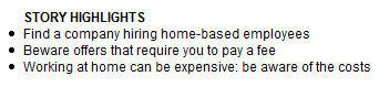 CNN has this article about companies that hire home-based workers. With quality of life becoming an increasingly paramount factor in people's lives more companies more companies allowing for employees to work from home. The story states that:
