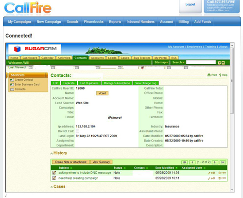 When a call is connected, your agent sees the SugarCRM contact instantly. Here is an example:How it works If you embed this code in your Excel list, for each phone number, it will place a clickable link in the Agent pop-up window. The link will open your browser based CRM.