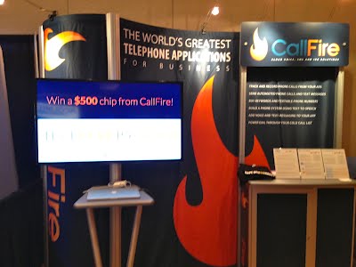 Our UX Designer, Nels; Client Success Manager, Albert; and Client Success Director, Michelle are all smiles at the CallFire booth. Do you spot our awesome fishbowl of USBs?