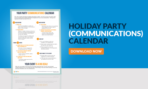 Your venue is booked, decorations are planned, and the catering is ordered... now all that's left is to get your guests to show up. Use our holiday party calendar and checklist to help plan all of your event communications - from guest list organization through to post-party follow-up.