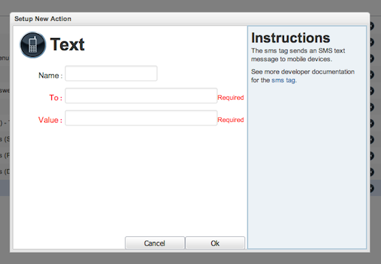 The Text tag sends out a text to a mobile device or many mobile devices.