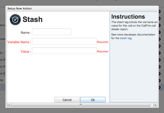 Name: Give your Stash tag a name. You might just call it "Stash," followed by the number of the key they'll press for that answer.