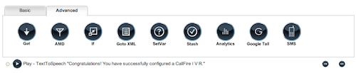 The second tab is the Advanced tab, where you'll find nine additional buttons. As with the Basic tab buttons, you will drag and drop these buttons into the workspace to structure your IVR.