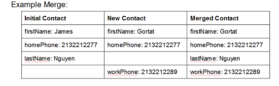 CallFire will detect them as the same contact. It will then give you the option to retain both as separate contacts, merge them, or ignore the newer contact. Should you choose to merge the contacts, all old information for that contact will be overwritten. If the newer contact has more attributes, they'll be added as well. In the above example, if merge was chosen, the original contact will now be: