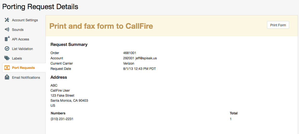 - Print and fax form to CallFire — CallFire is waiting to receive your porting request.