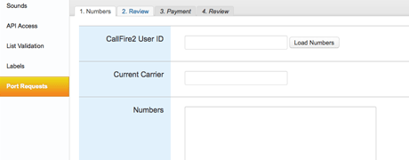Need to bring your existing numbers over to CallFire? No sweat! Just use the Port Numbers button to get to our Porting Request – Numbers section, which makes the process simple and painless!