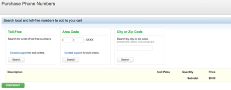 With our new Purchase Numbers screen, you can quickly search for and buy phone numbers on a toll-free, area code, zip code or city basis. And convenient menu options let you check your credit usage and payment histories.