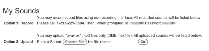 Type in user id and password. this is found under toolbox --> sound manager at the top of the page.