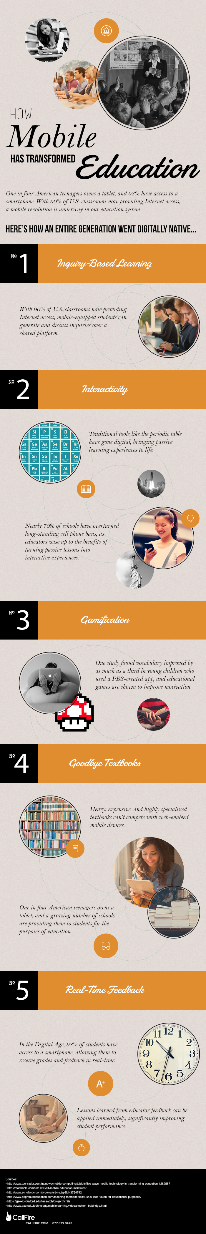 Anyone who remembers going to school weighed down by a bag of seam-busting textbooks and leaky pens would be astonished at the tech revolution that's taken place in our education system. Tablets and smartphones are accessible to the vast majority of students, and classrooms are increasingly harnessing the power of the Internet and mobile apps to help our kids learn more effectively. Check out our infographic for some of the key changes to have taken place over the last few years...